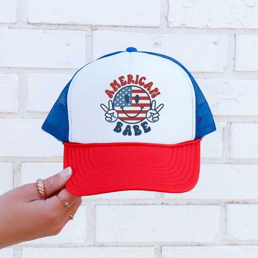 American Babe Trucker Hat 😎 Smiley Face USA Snapback