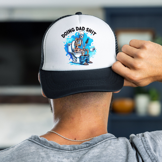 "Doing Dad Shit" Blue Splash Skeleton Trucker Hat