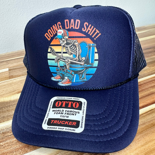 "Doing Dad Shit" Skeleton Hat – Navy Foam Trucker